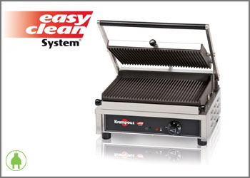 Krampouz har utvecklat en rad professionella Multi Contact Grillar som erbjuder två innovationer som kallas "easy clean" -system. De utbytbara grillhällarna är extremt resistenta och gör att du enkelt kan tillaga rätter. Njut av enkelheten att rengöra vilket du kan i diskmaskin tack vare den enkla och snabba demonteringen av båda laggarna.