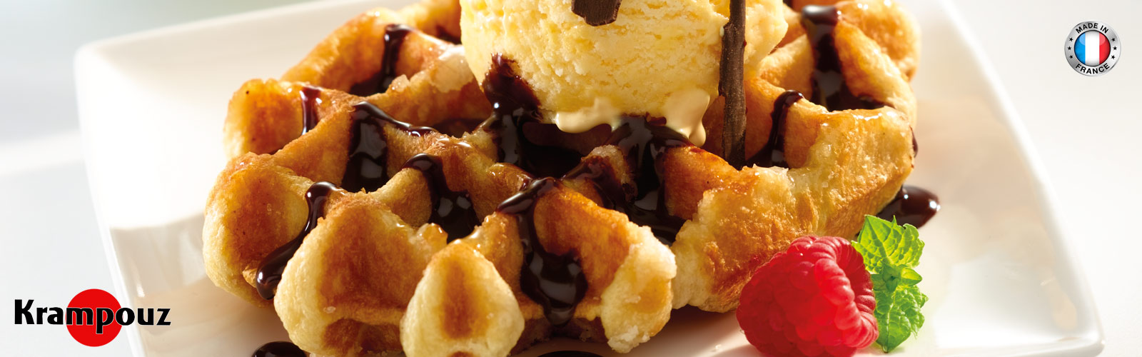 Krampouz professionella våffeljärn fins i flera varianter och gräddar flera våffeltyper så som Brussel, Liège, hjärtan och churros. Perfekt värmefördelning, tillförlitlighet och robusthet är Krampouz tekniska egenskaper.